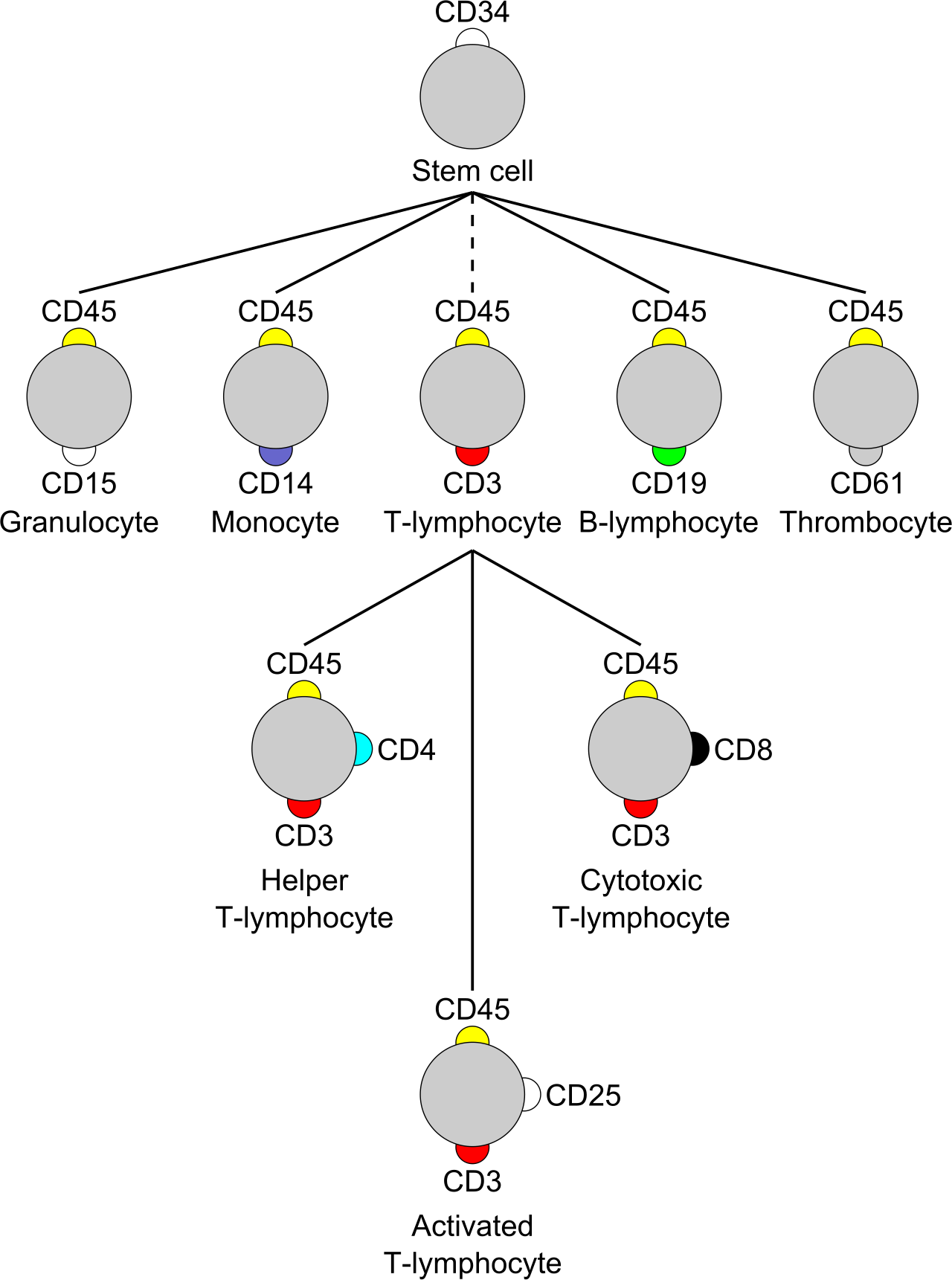 | B lymphocyte | CD45+, CD19+, CD20+, CD24+, CD38, CD22 |